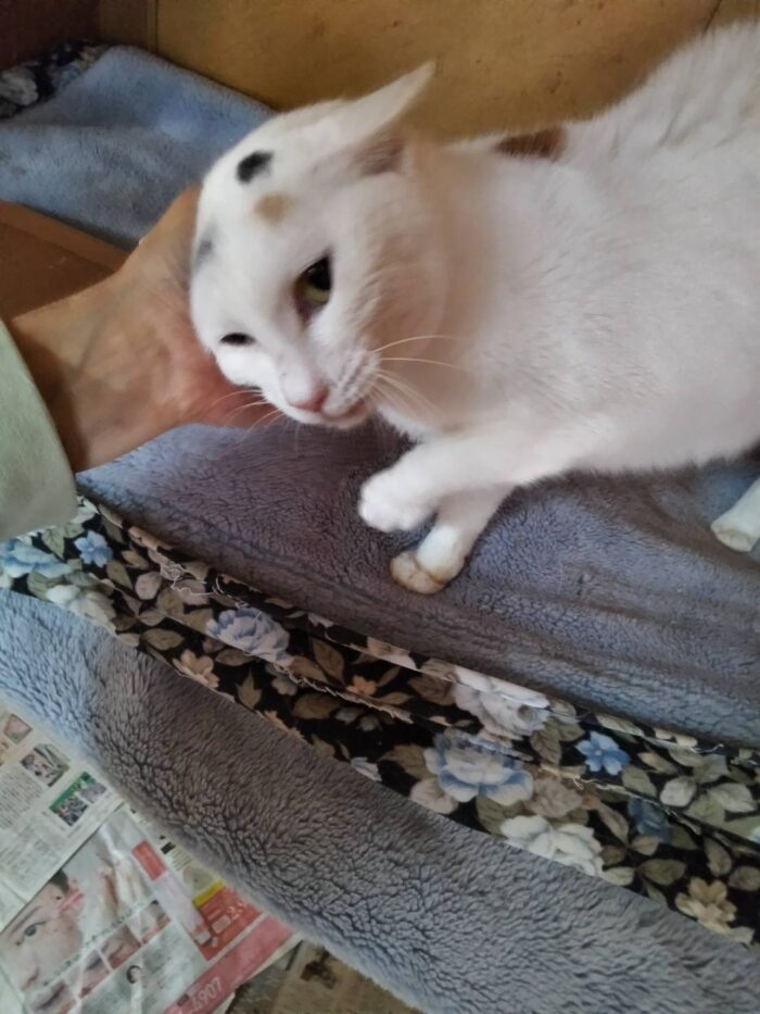 3匹の子猫と一緒に保護。横隔膜ヘルニアでも出産育児していた頑張り屋さん。スリスリゴロゴロの甘えん坊